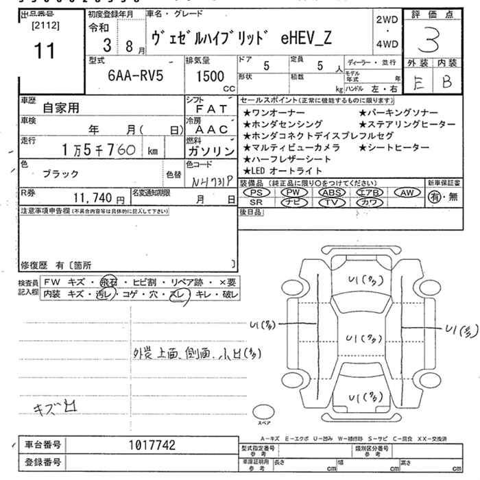 HONDA VEZEL - лот 11