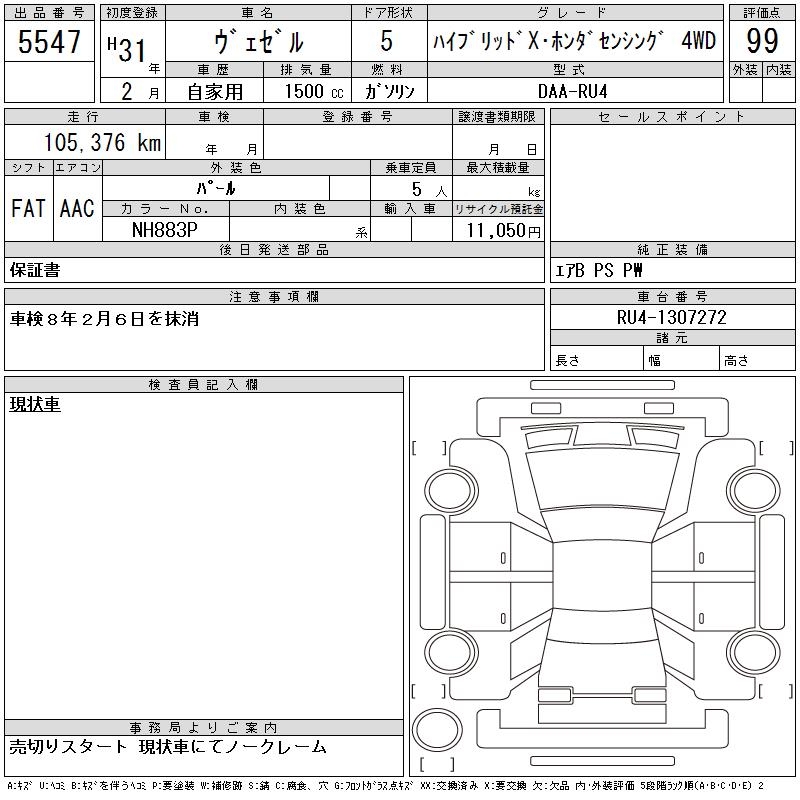 HONDA VEZEL - лот 5547