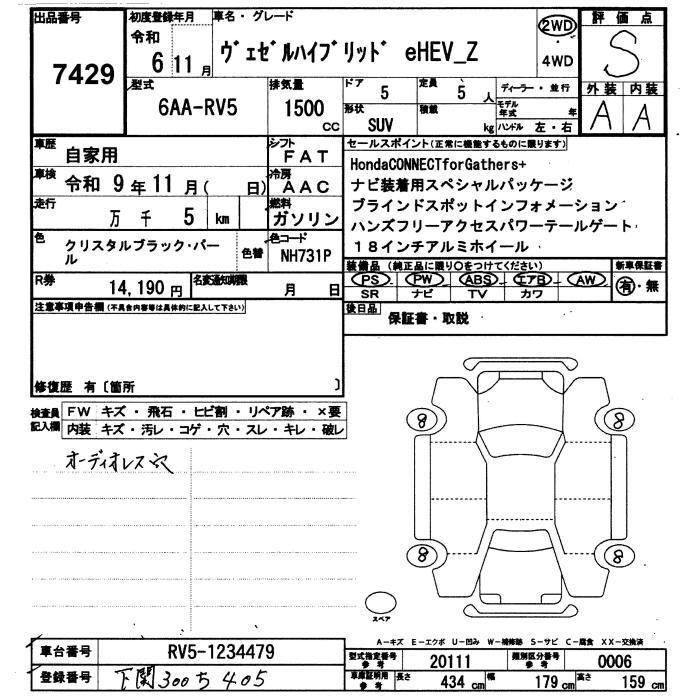 HONDA VEZEL - лот 7429