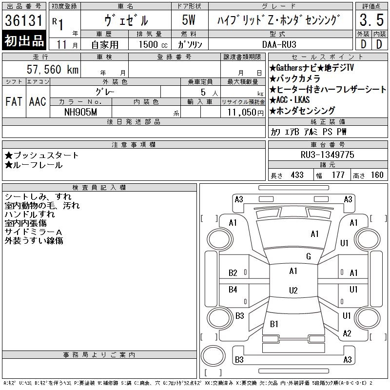 HONDA VEZEL - лот 36131