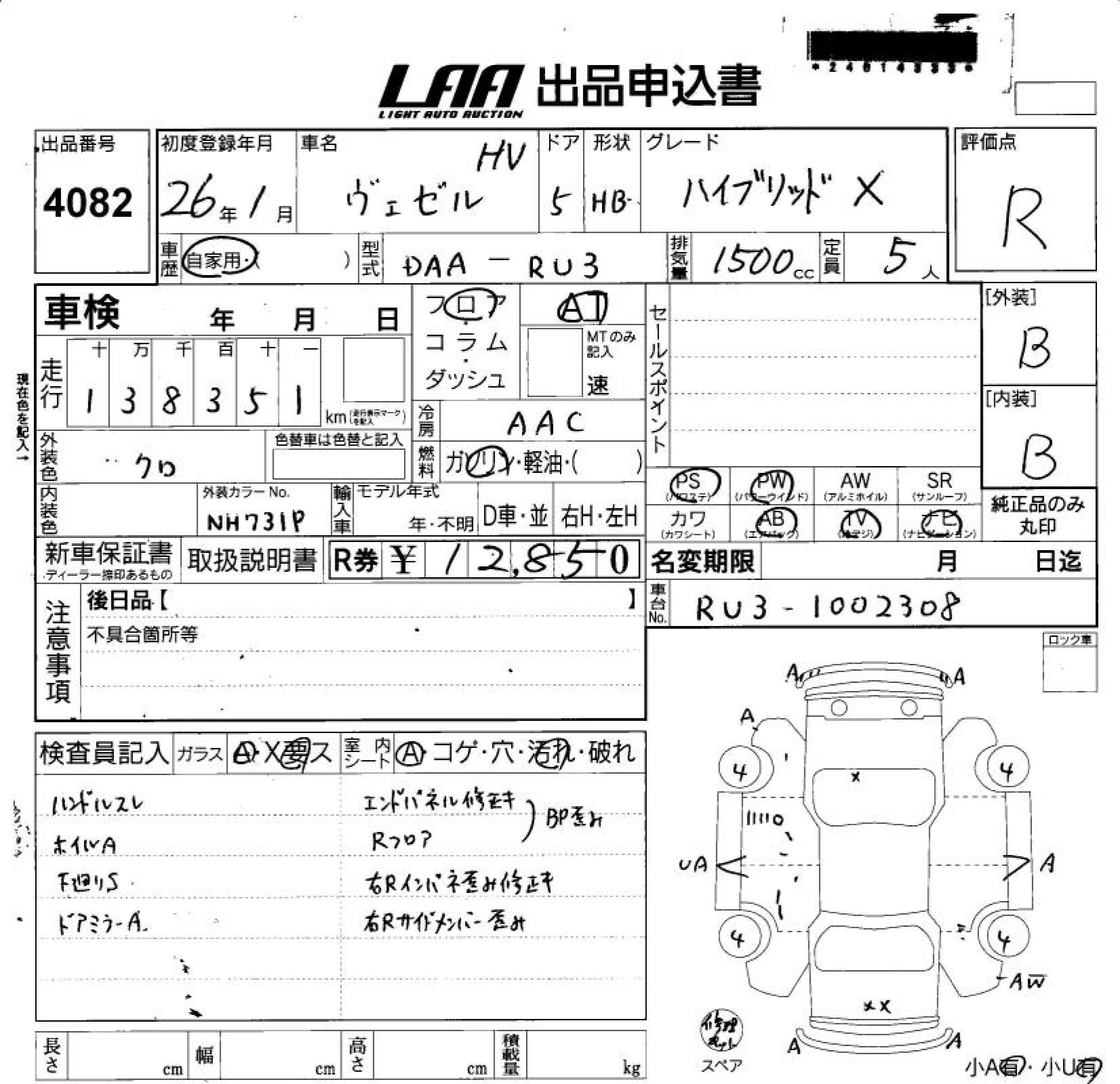 HONDA VEZEL - лот 4082