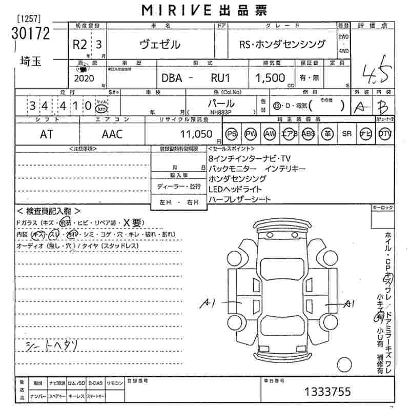 HONDA VEZEL - лот 30172