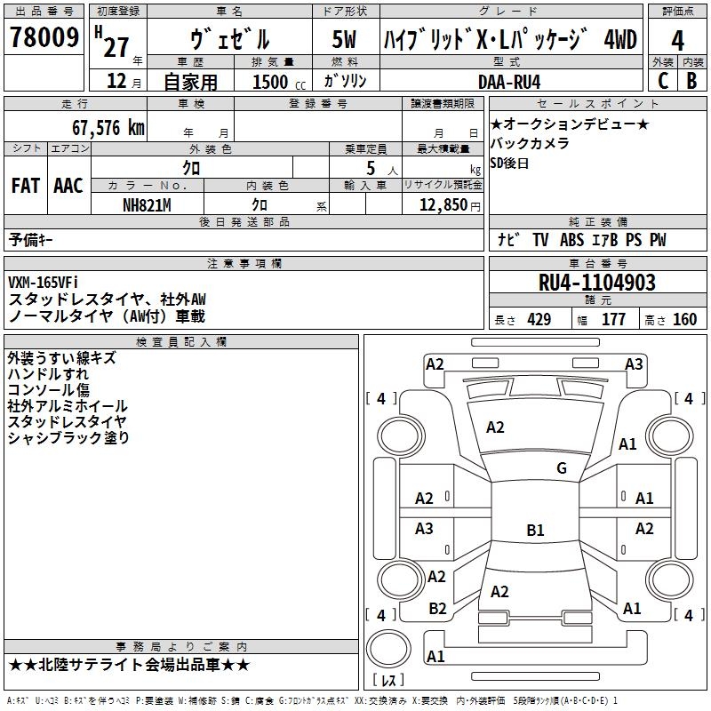 HONDA VEZEL - лот 78009