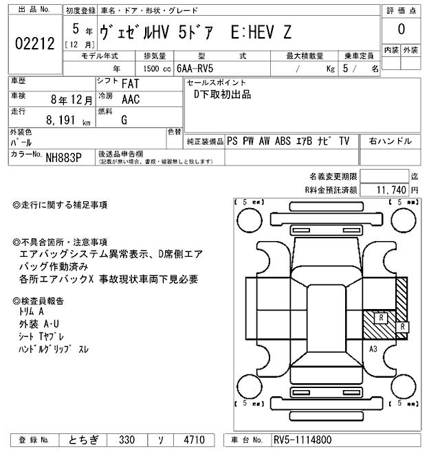 HONDA VEZEL - лот 2212
