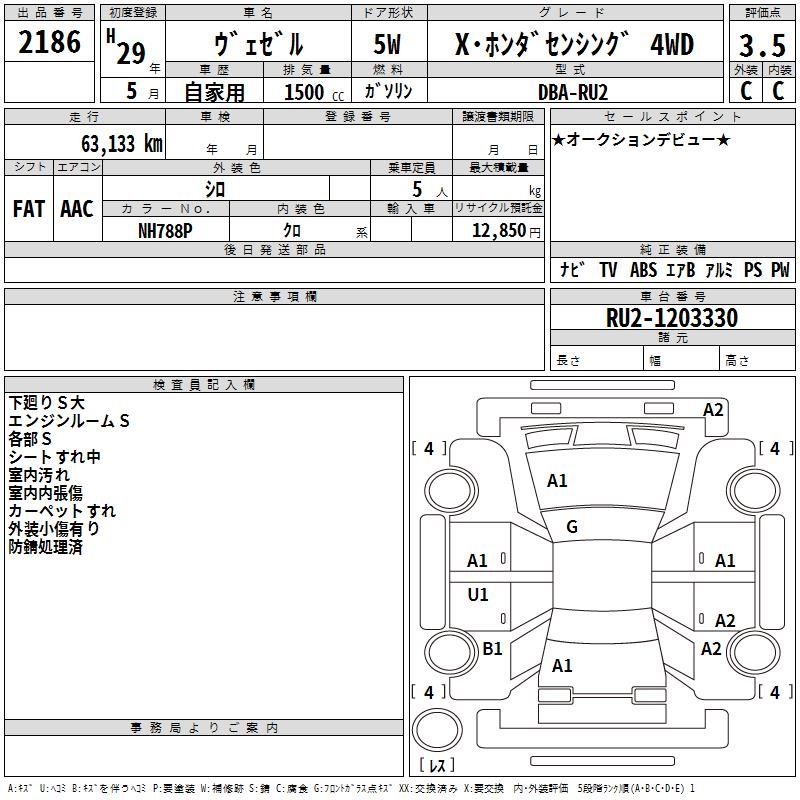 HONDA VEZEL - лот 2186