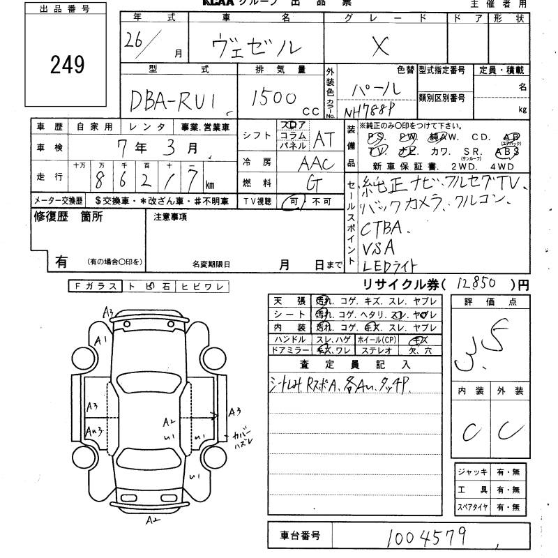 HONDA VEZEL - лот 249
