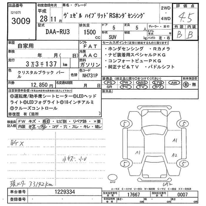 HONDA VEZEL - лот 3009