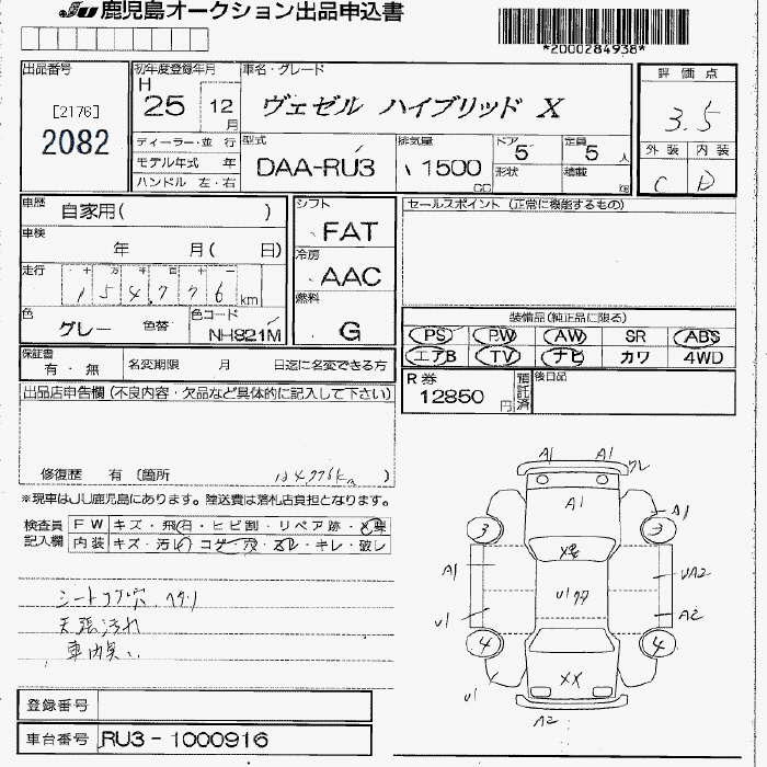 HONDA VEZEL - лот 2082