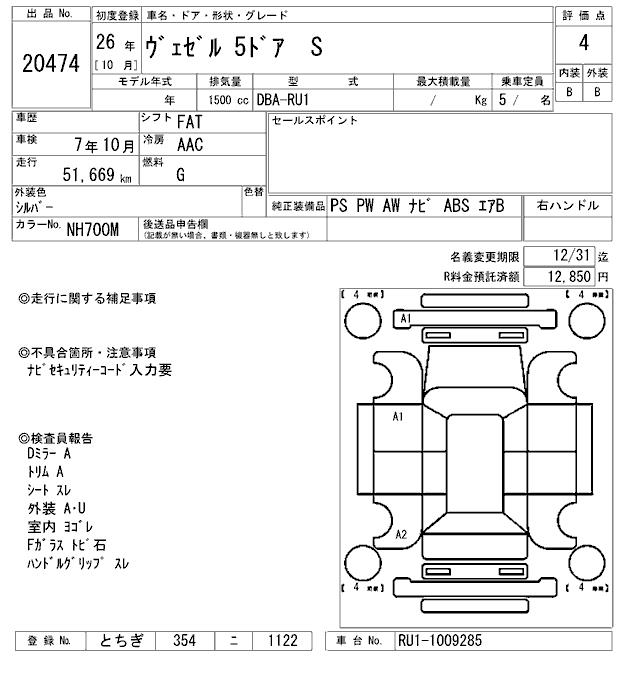 HONDA VEZEL - лот 20474
