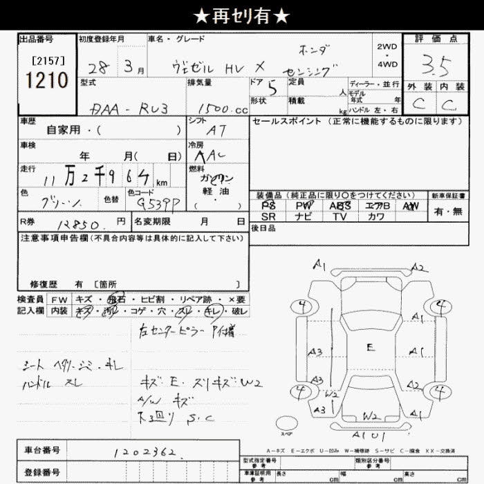 HONDA VEZEL - лот 1210