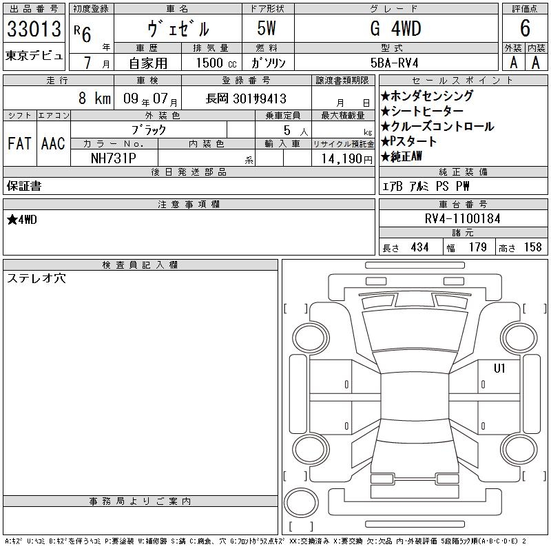 HONDA VEZEL - лот 33013
