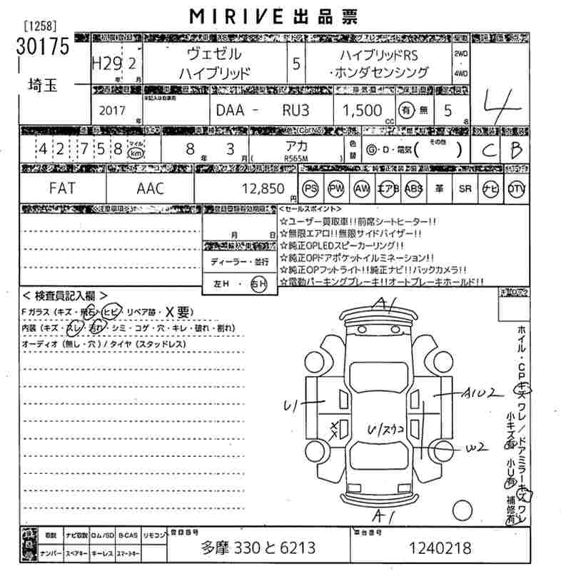 HONDA VEZEL - лот 30175