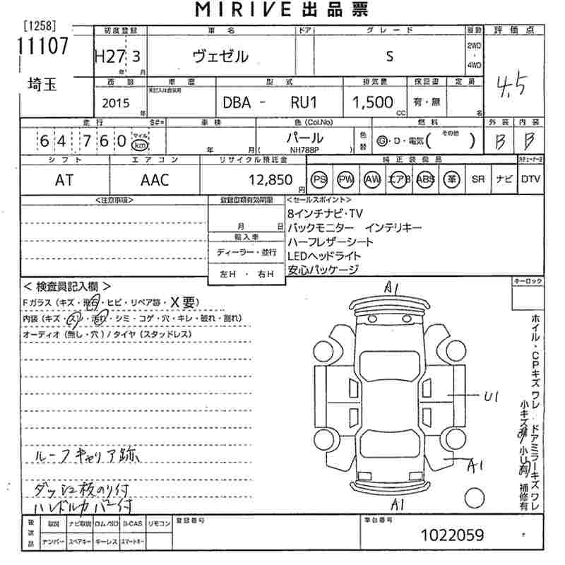 HONDA VEZEL - лот 11107