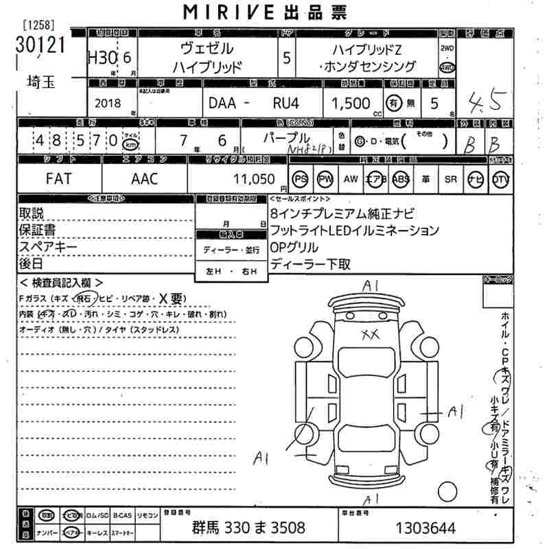 HONDA VEZEL - лот 30121
