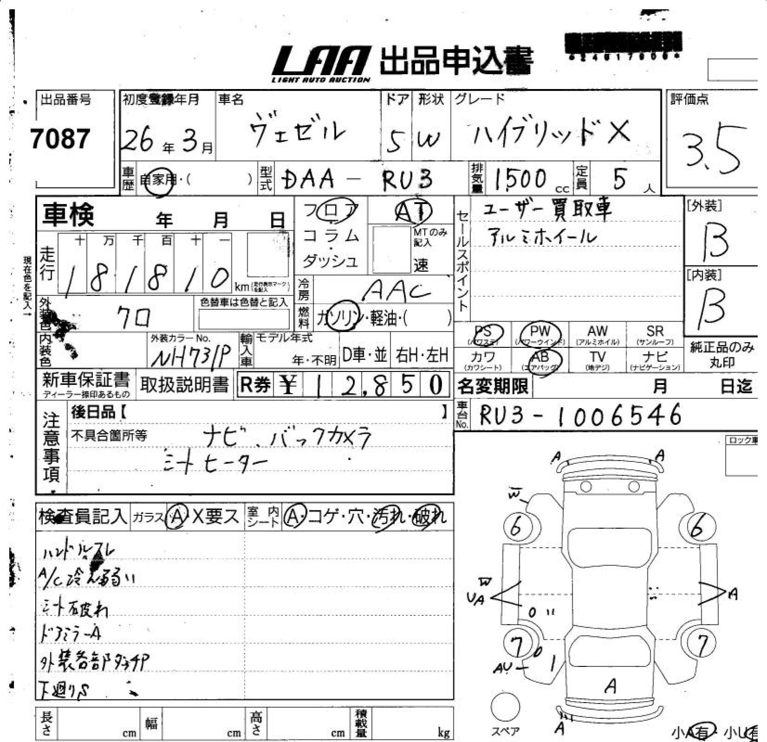 HONDA VEZEL - лот 7087