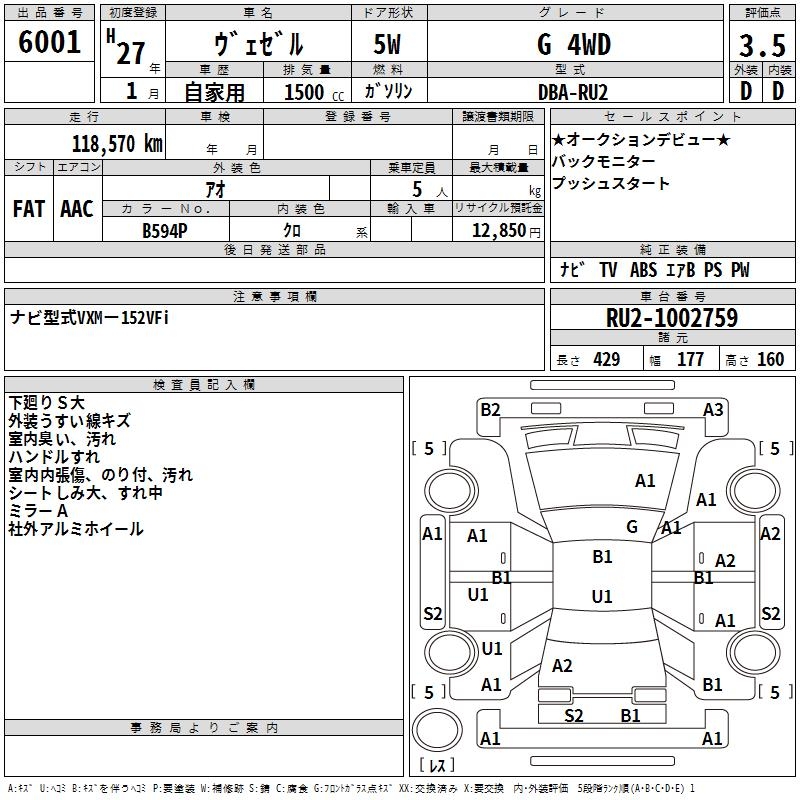 HONDA VEZEL - лот 6001