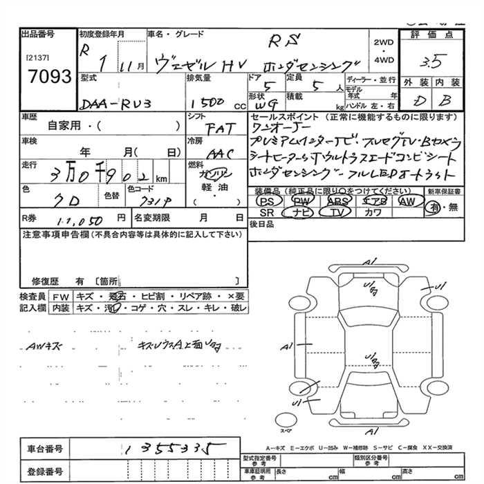 HONDA VEZEL - лот 7093