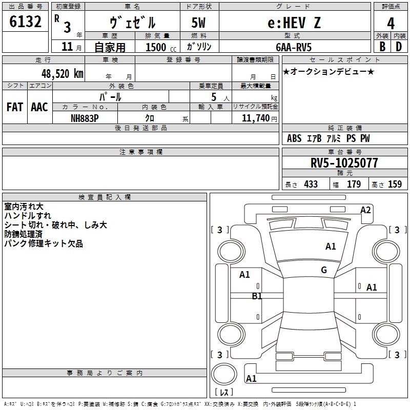 HONDA VEZEL - лот 6132