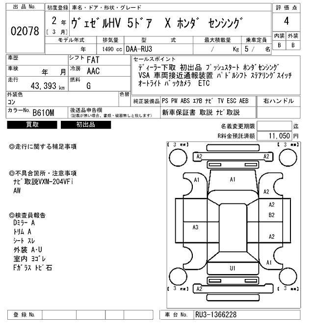 HONDA VEZEL - лот 2078