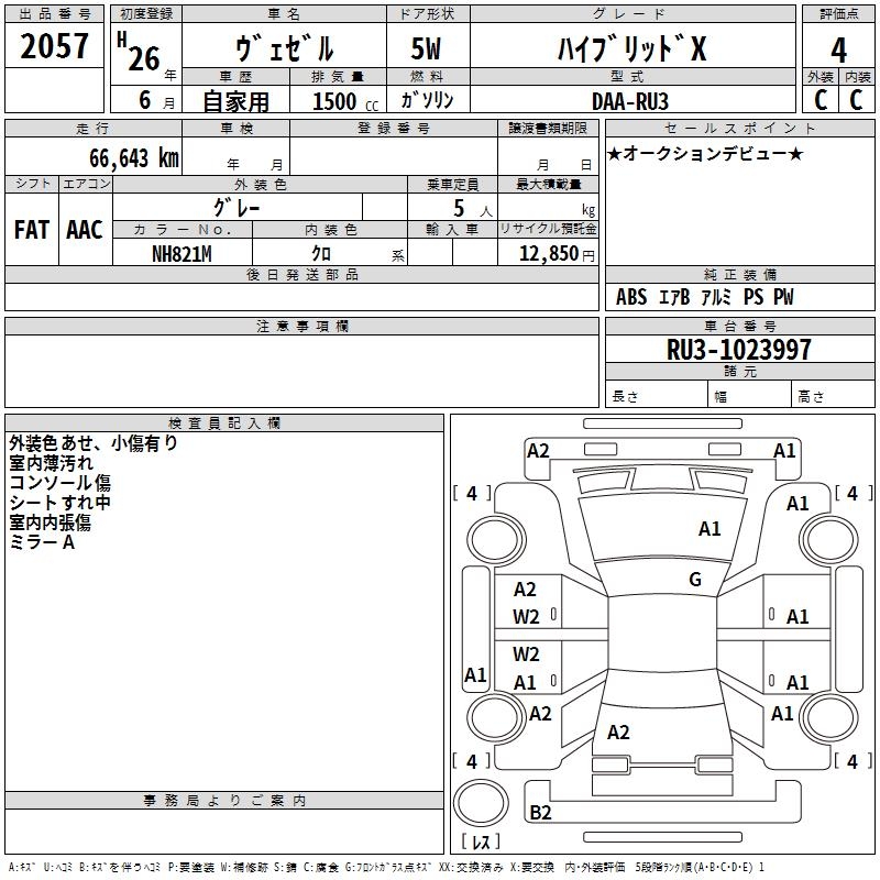 HONDA VEZEL - лот 2057