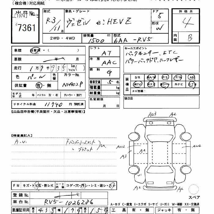 HONDA VEZEL - лот 7361