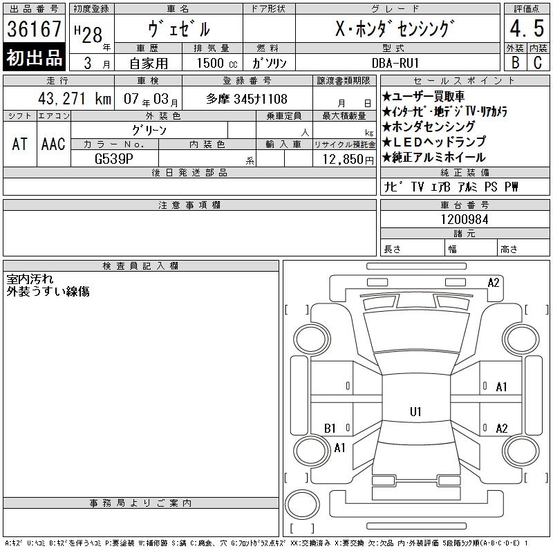 HONDA VEZEL - лот 36167
