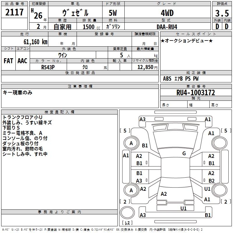 HONDA VEZEL - лот 2117