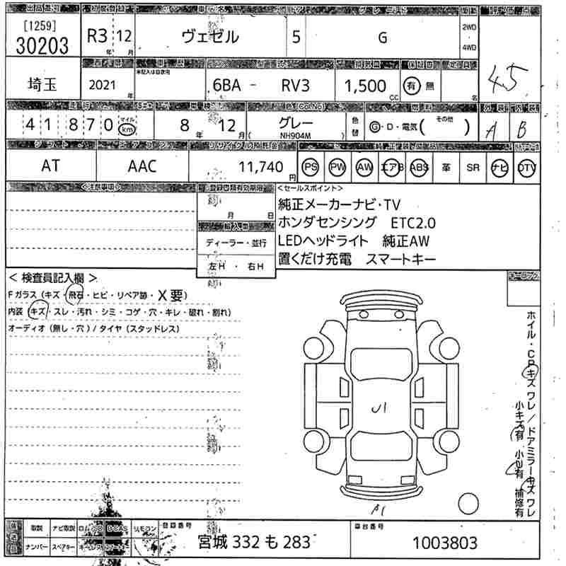 HONDA VEZEL - лот 30203