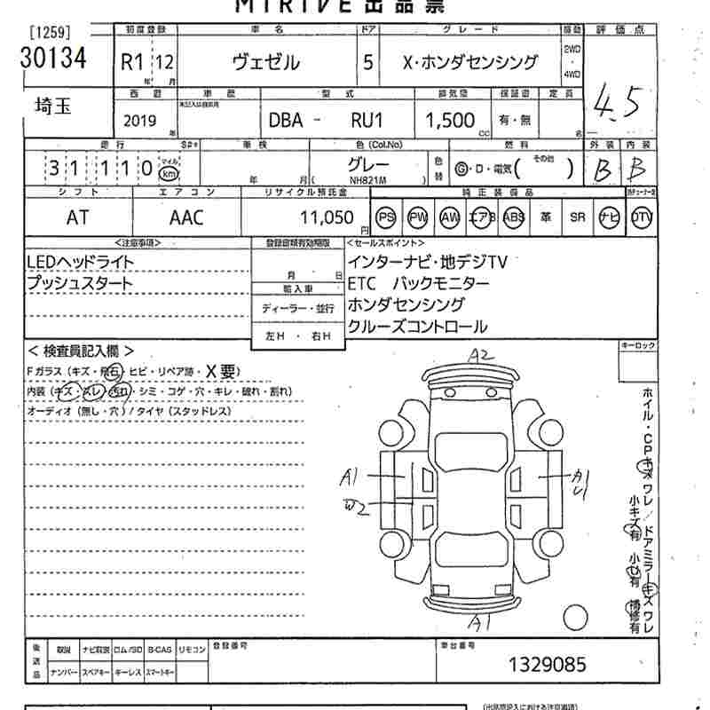 HONDA VEZEL - лот 30134