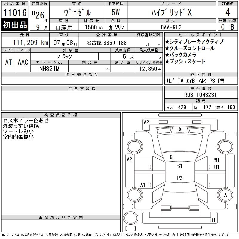 HONDA VEZEL - лот 11016