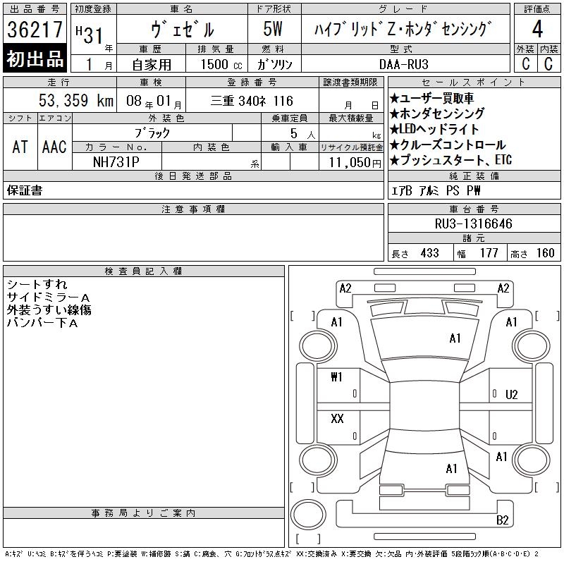 HONDA VEZEL - лот 36217