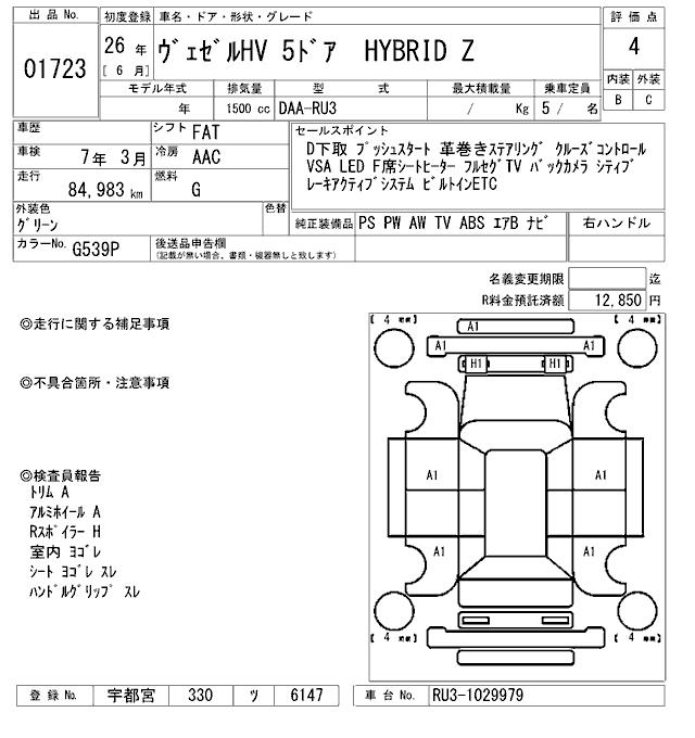 HONDA VEZEL - лот 1723