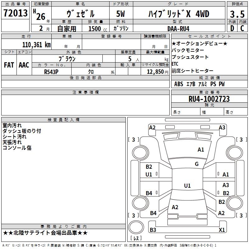 HONDA VEZEL - лот 72013