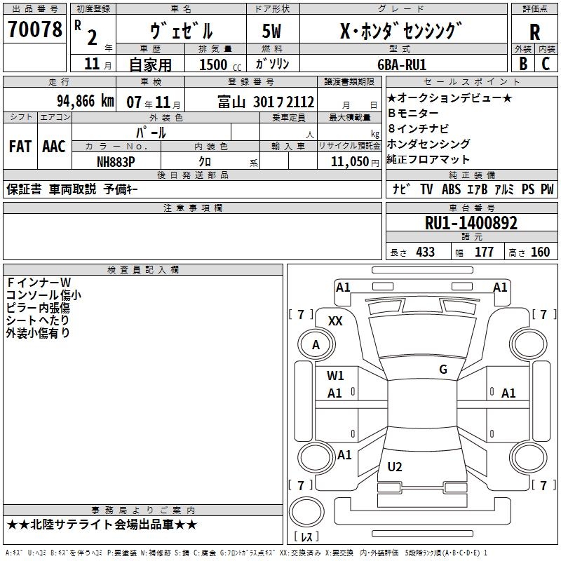 HONDA VEZEL - лот 70078