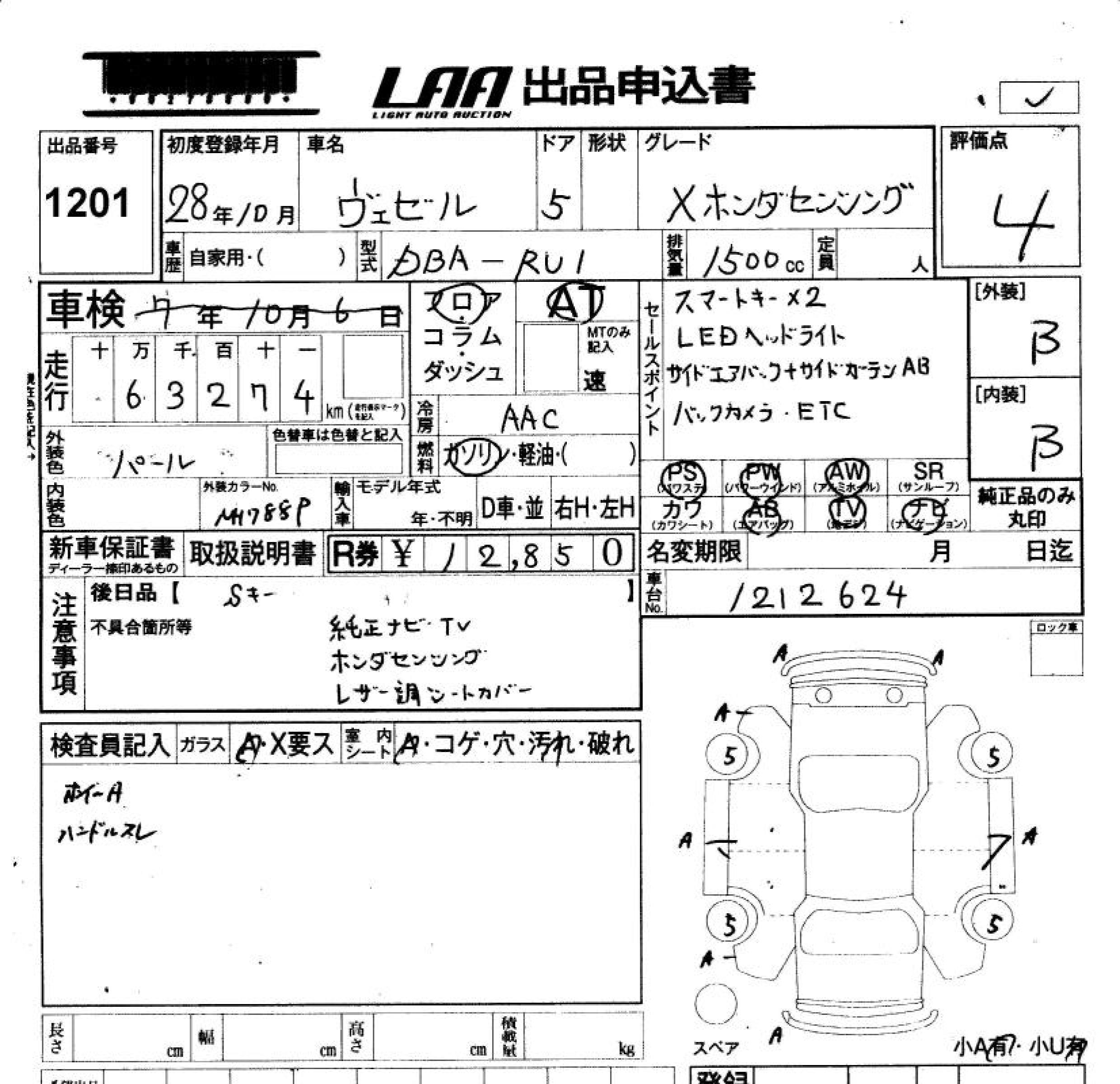 HONDA VEZEL - лот 1201