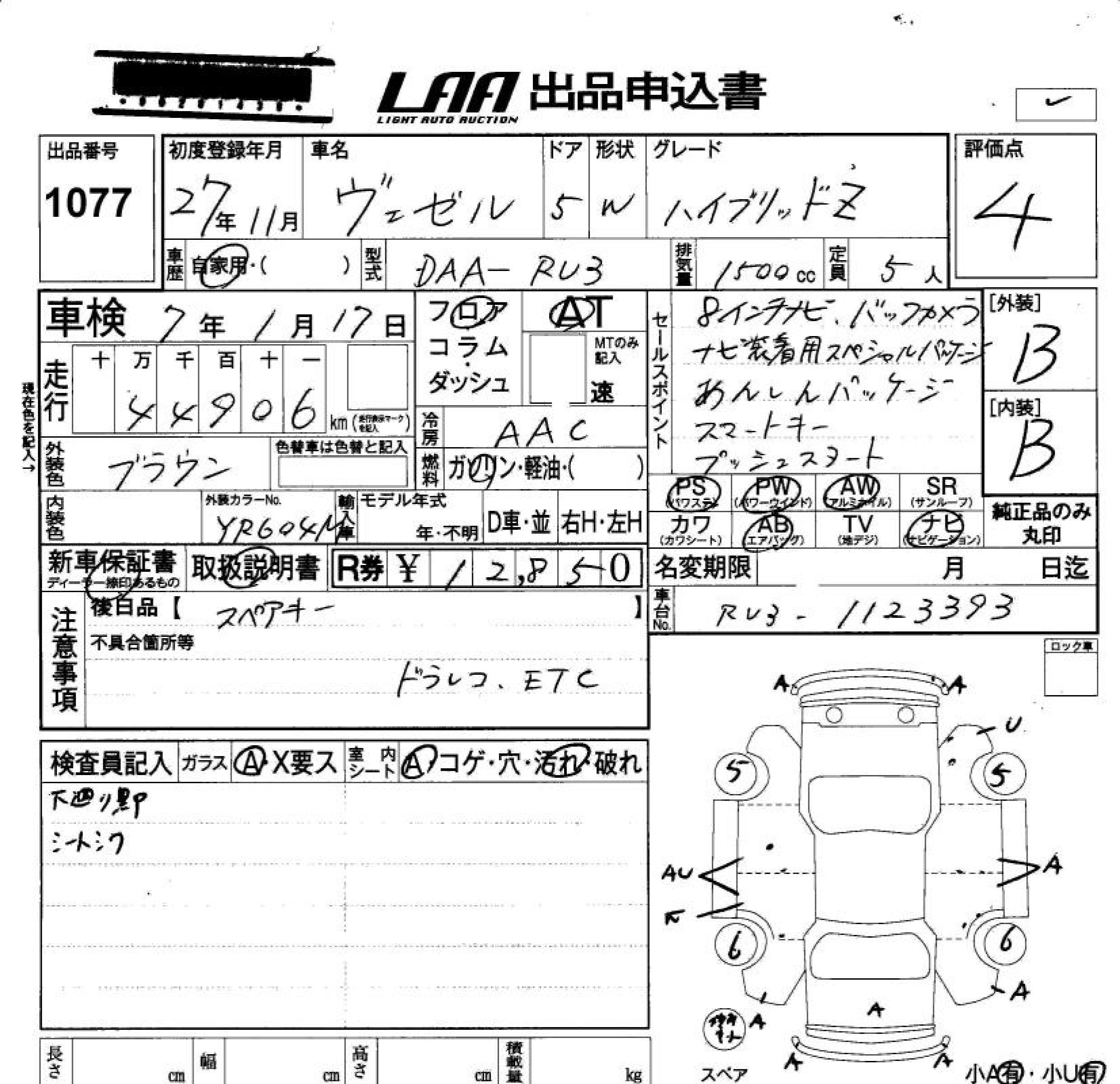 HONDA VEZEL - лот 1077