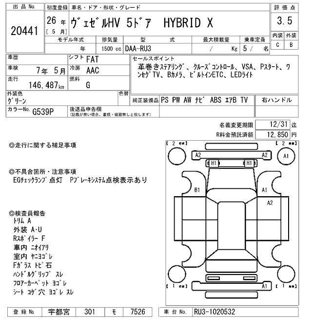 HONDA VEZEL - лот 20441