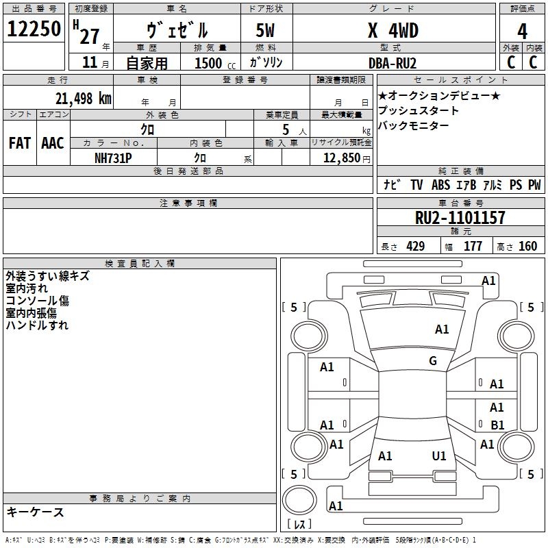 HONDA VEZEL - лот 12250