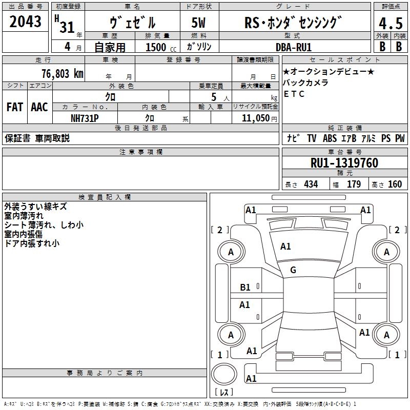 HONDA VEZEL - лот 2043