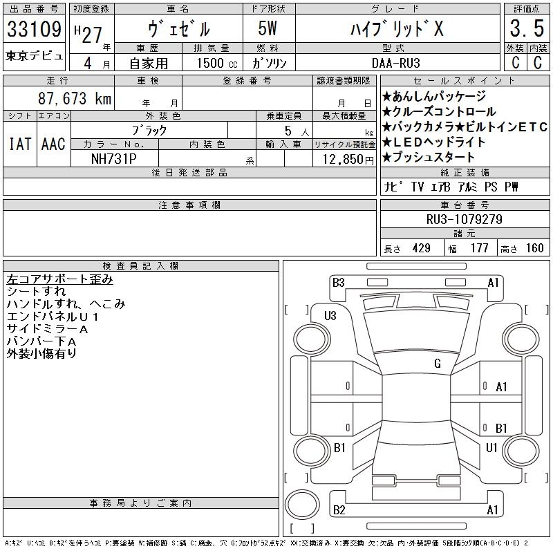 HONDA VEZEL - лот 33109