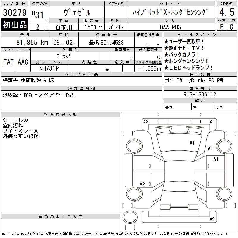 HONDA VEZEL - лот 30279