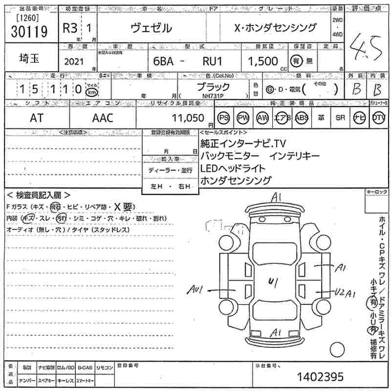 HONDA VEZEL - лот 30119