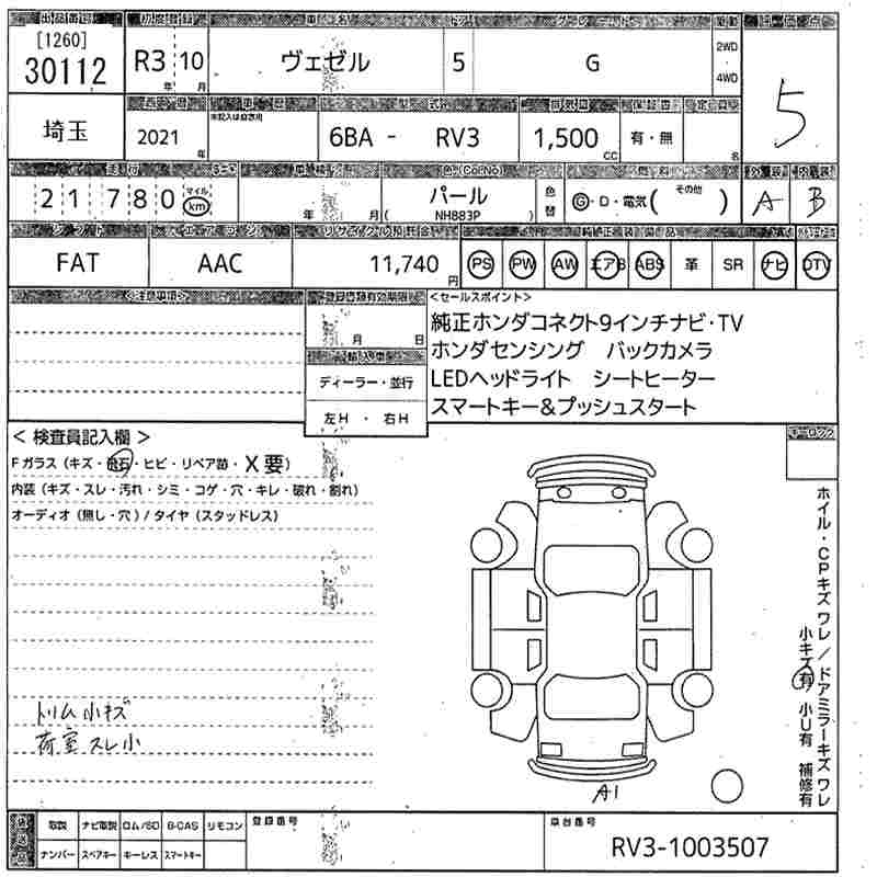 HONDA VEZEL - лот 30112