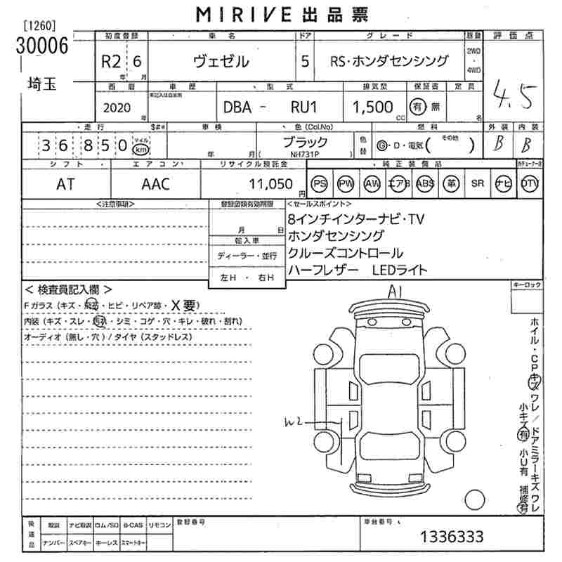 HONDA VEZEL - лот 30006
