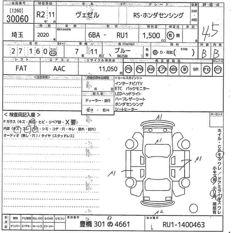 HONDA VEZEL - лот 30060