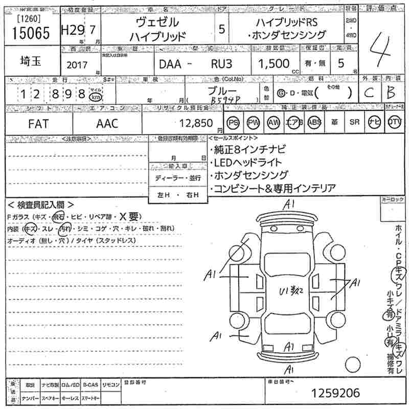 HONDA VEZEL - лот 15065