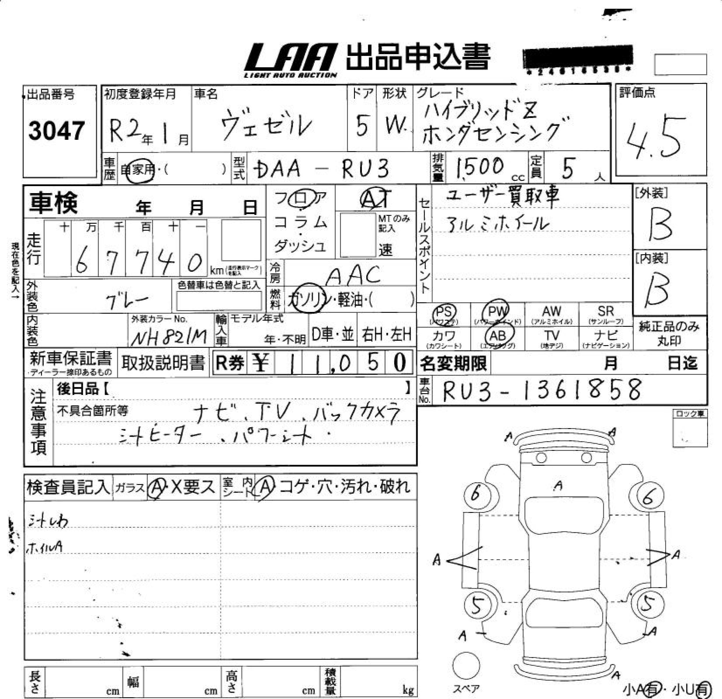 HONDA VEZEL - лот 3047