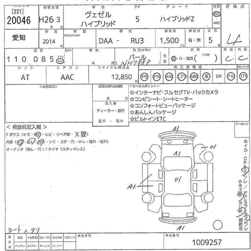 HONDA VEZEL - лот 20046