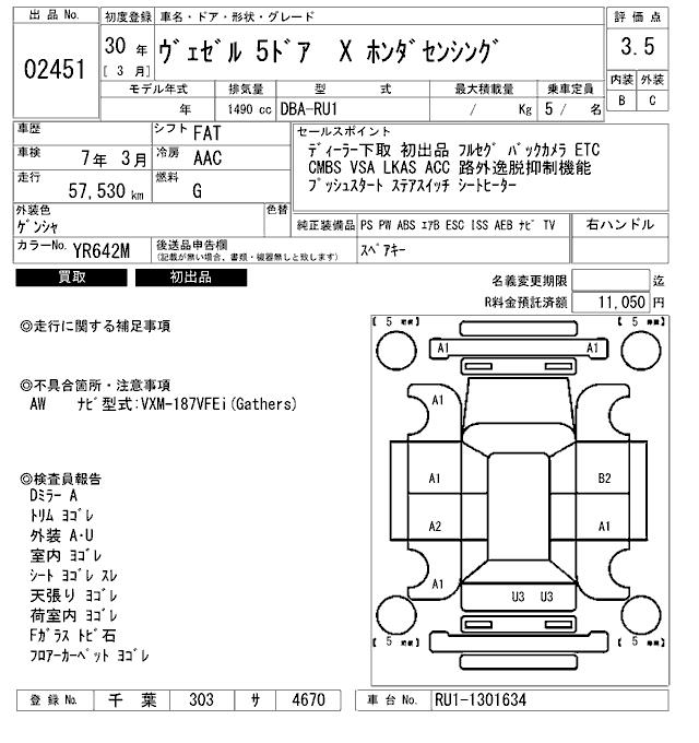 HONDA VEZEL - лот 2451
