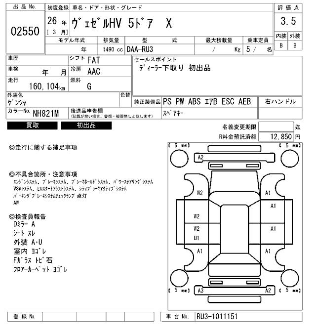 HONDA VEZEL - лот 2550